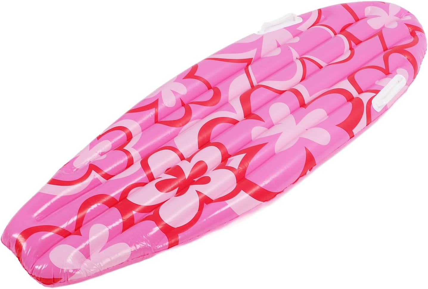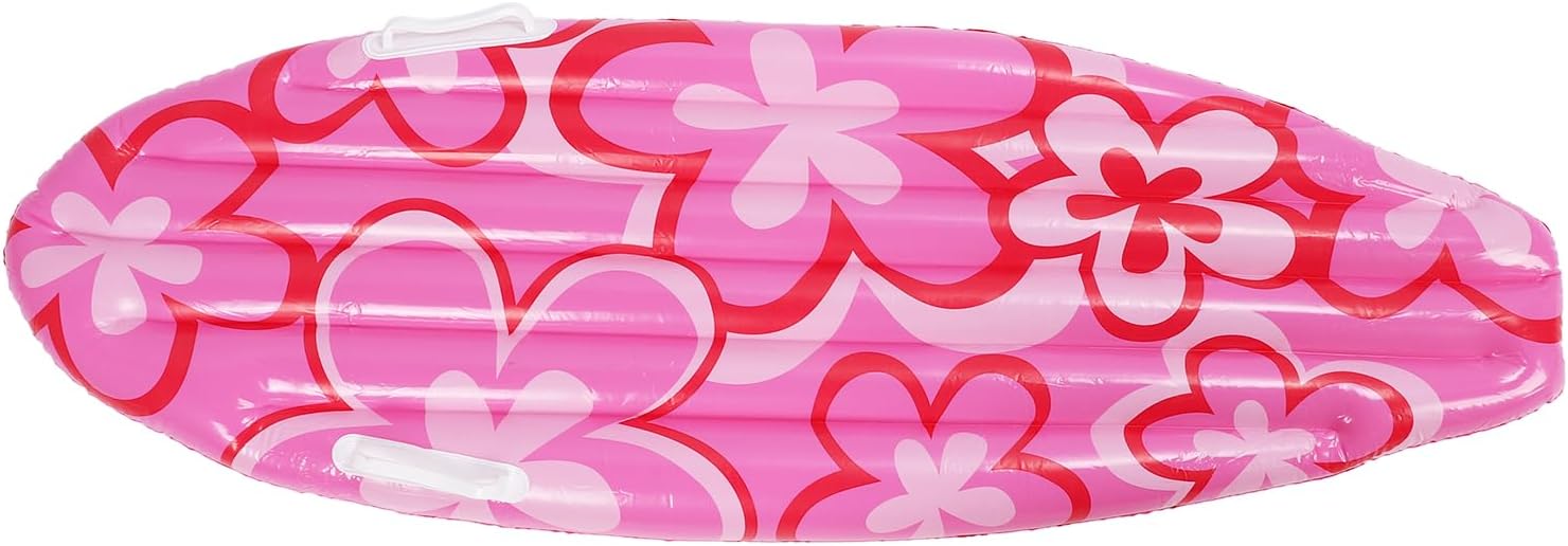 Inflatable Surfboard, Lightweight PVC Pool Float with Pink Flower Design, Long Lasting for Summer Party Beach Birthday Pool Decor