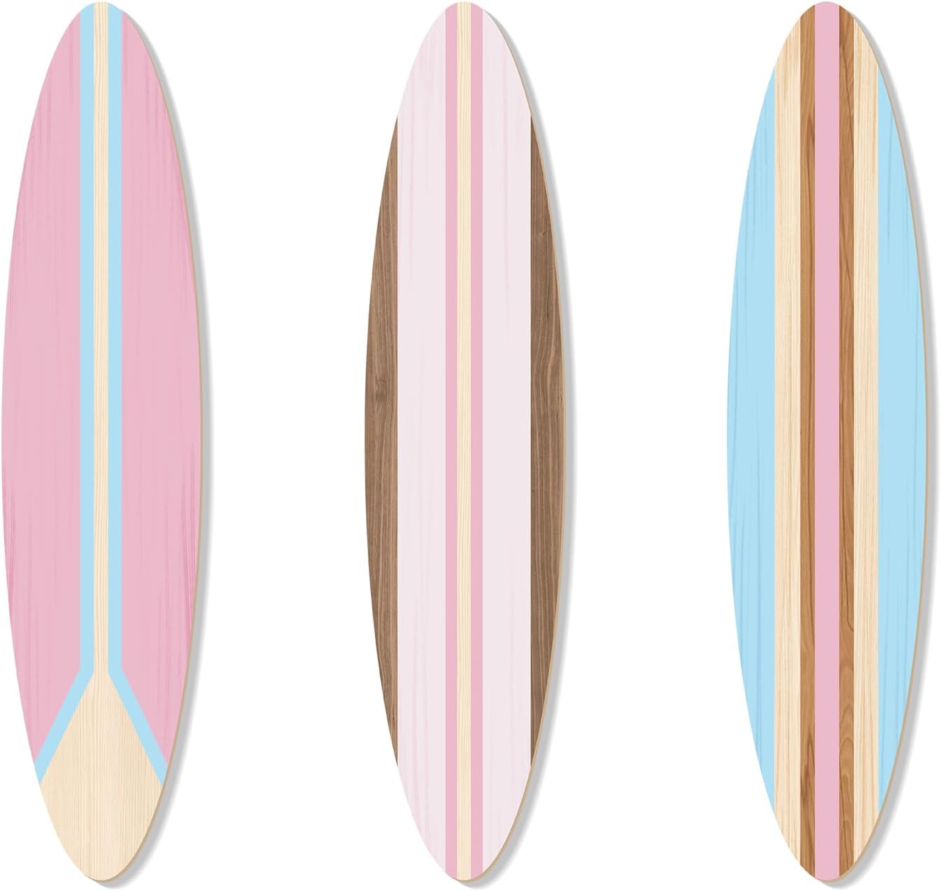 3 Pieces Surfboard Wall Decor 23.6″ x 5.4″ Preppy Beach Room Decor Aesthetic Large Wooden Cute Beachy Tropical Wall Art for Surfer Bedroom Living Room Bathroom Decorations(Pink)
