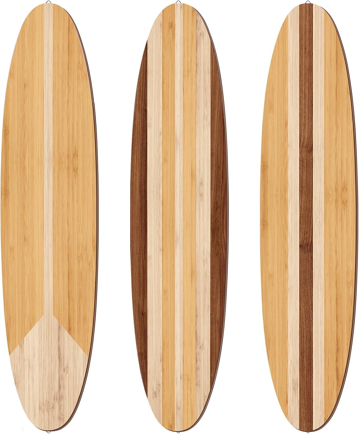 3 Pieces Surfboard Wall Decor 23.6″ x 5.4″ Preppy Beach Room Decor Aesthetic Large Wooden Cute Beachy Tropical Wall Art for Surfer Bedroom Living Room Bathroom Decorations (Log Color)