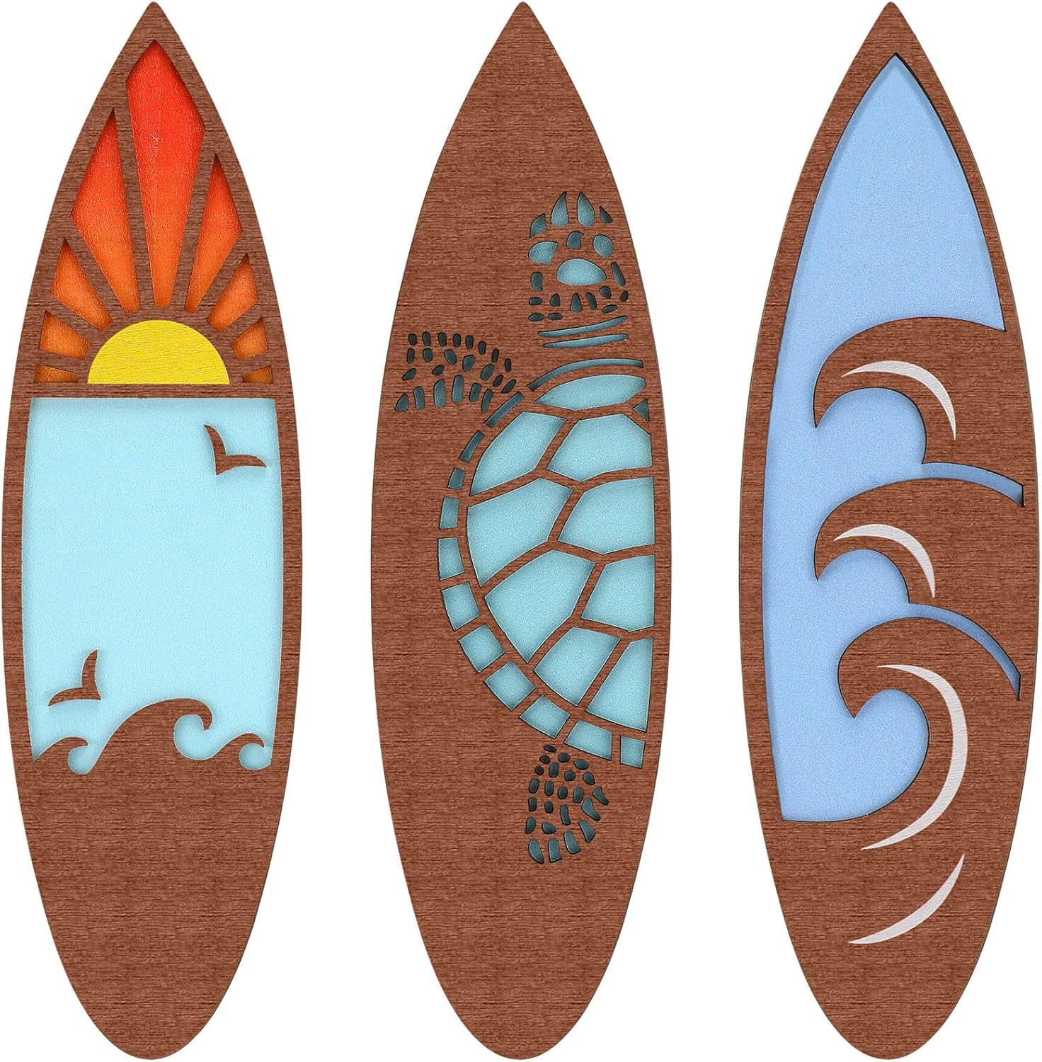 3 Pieces Cute Surfboard Wall Decor Beachy Room Decoration Wood Surfboard Wall Hanging Sign Beach Themed Room Decor Room Decor for Living Room Bedroom Bathroom (Medium)