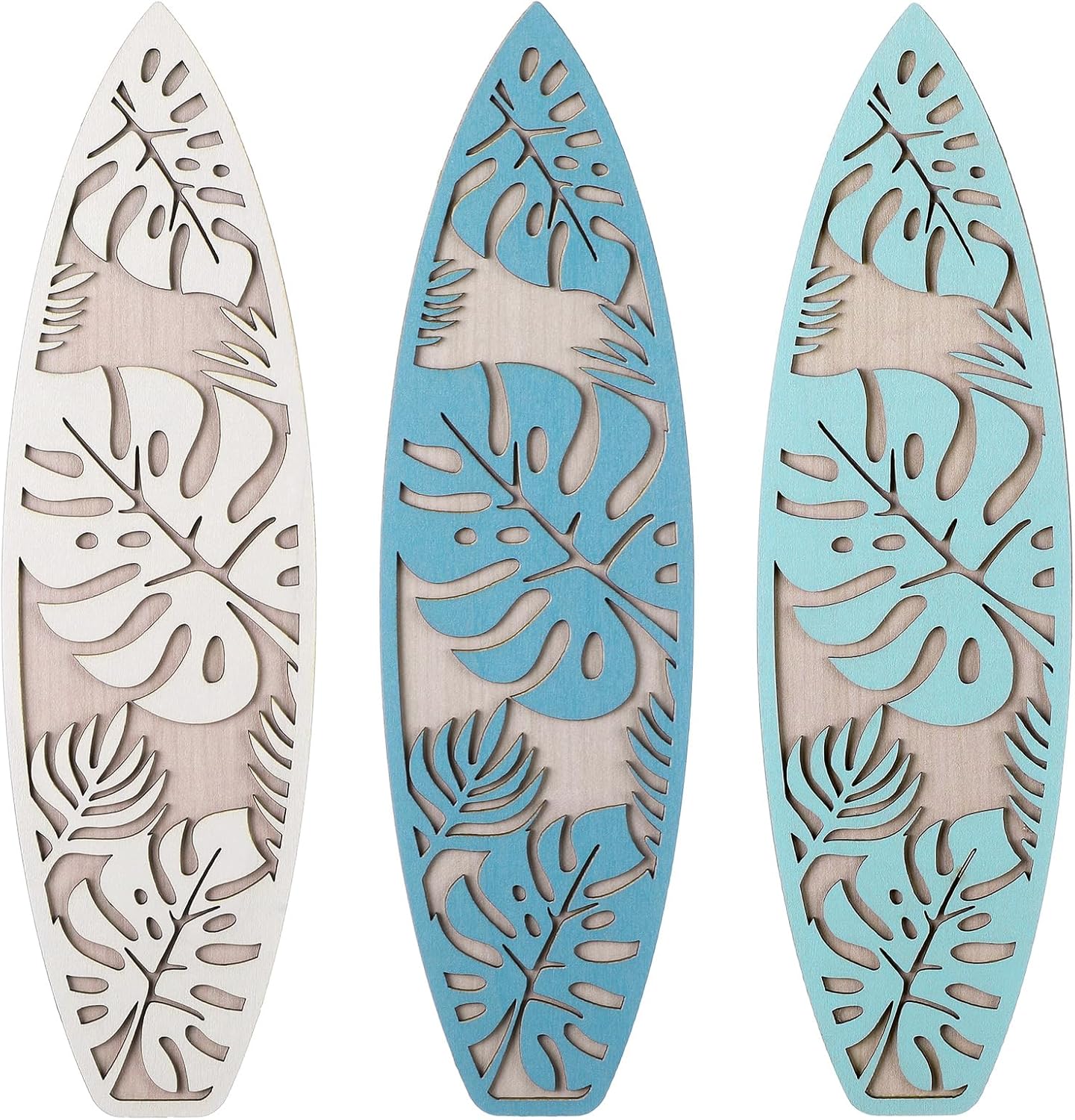 3 Pieces Surfboard Decor for Bedroom Wooden Beach Wall Decor Summer Wood Surfboard Wall Hanging Sign for Tropical Living Room Decoration(Monstera,Blue)