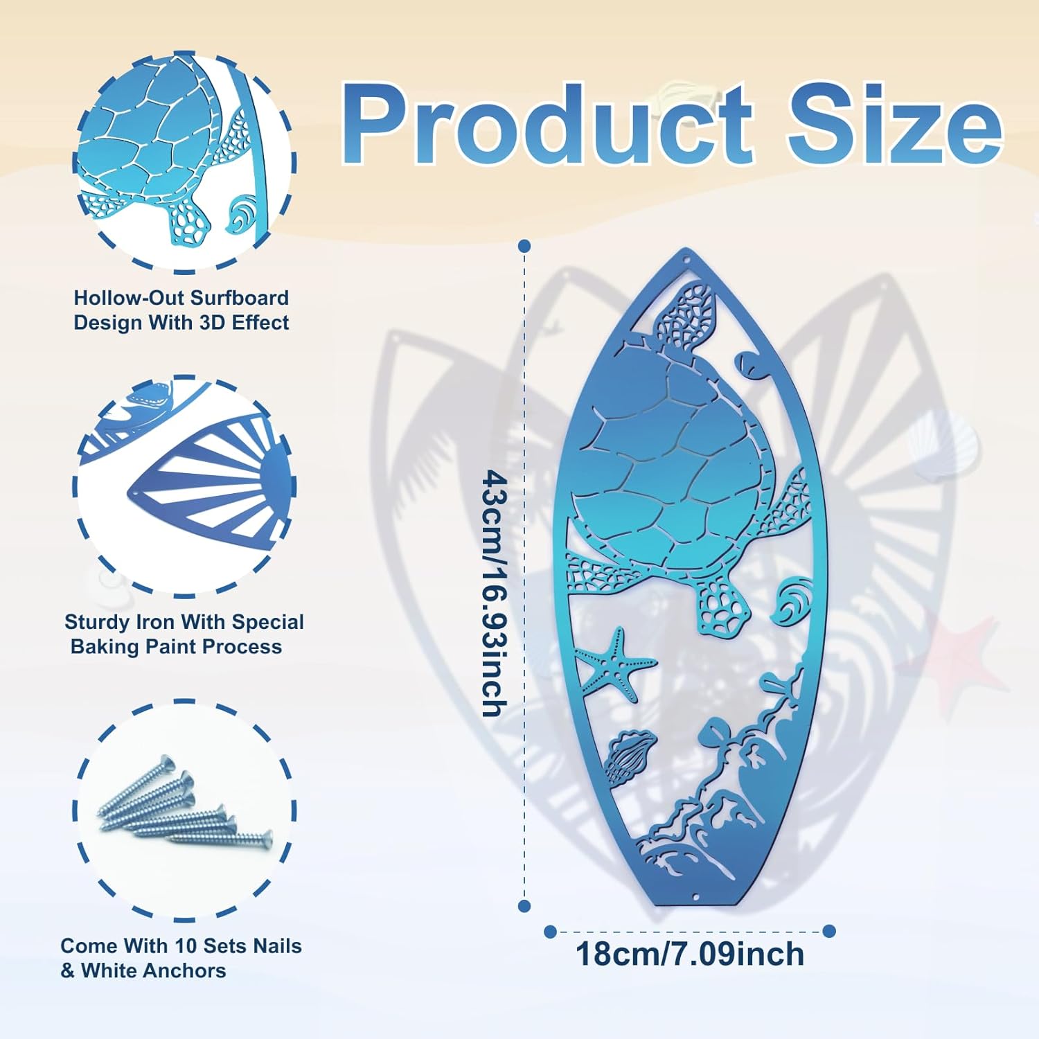 【Sturdy and Reliable】Full real metal. These surf board wall decors are made of reliable Iron with special baking paint process, sturdy and durable, not rust or fade, not easy to bend or deform, can be used for long time. Exquisite metal texture and suitable for any background walls and most decoration styles.